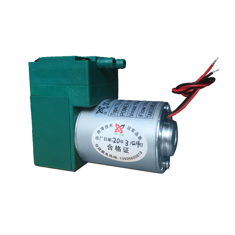 臺冠單頭微型真空泵,是由東莞市馬力機電有限公司研發生產,采用有刷直流馬達,速度可調,流量可調,發熱量低。是一種體積小巧,無油環保的微型真空泵。其工作時不需要潤滑油和真空泵油,能在進口處能夠持續形成真空或負壓,排氣嘴處形成微正壓,不污染工作介質,免維護,重量輕,外形美觀、大壓力、高流量、抗腐蝕,可以連續24小時運轉,常溫環境使用壽命長等特性優點,主要用于電器產品,工業產品, 醫療器械分析儀器,化學及生產工程及各種精密儀器配套,廣泛用于氣體采樣、氣體循環、真空吸附、加速過濾、汽車真空助力等等場合,在醫療、衛生、科研、環保等領域。